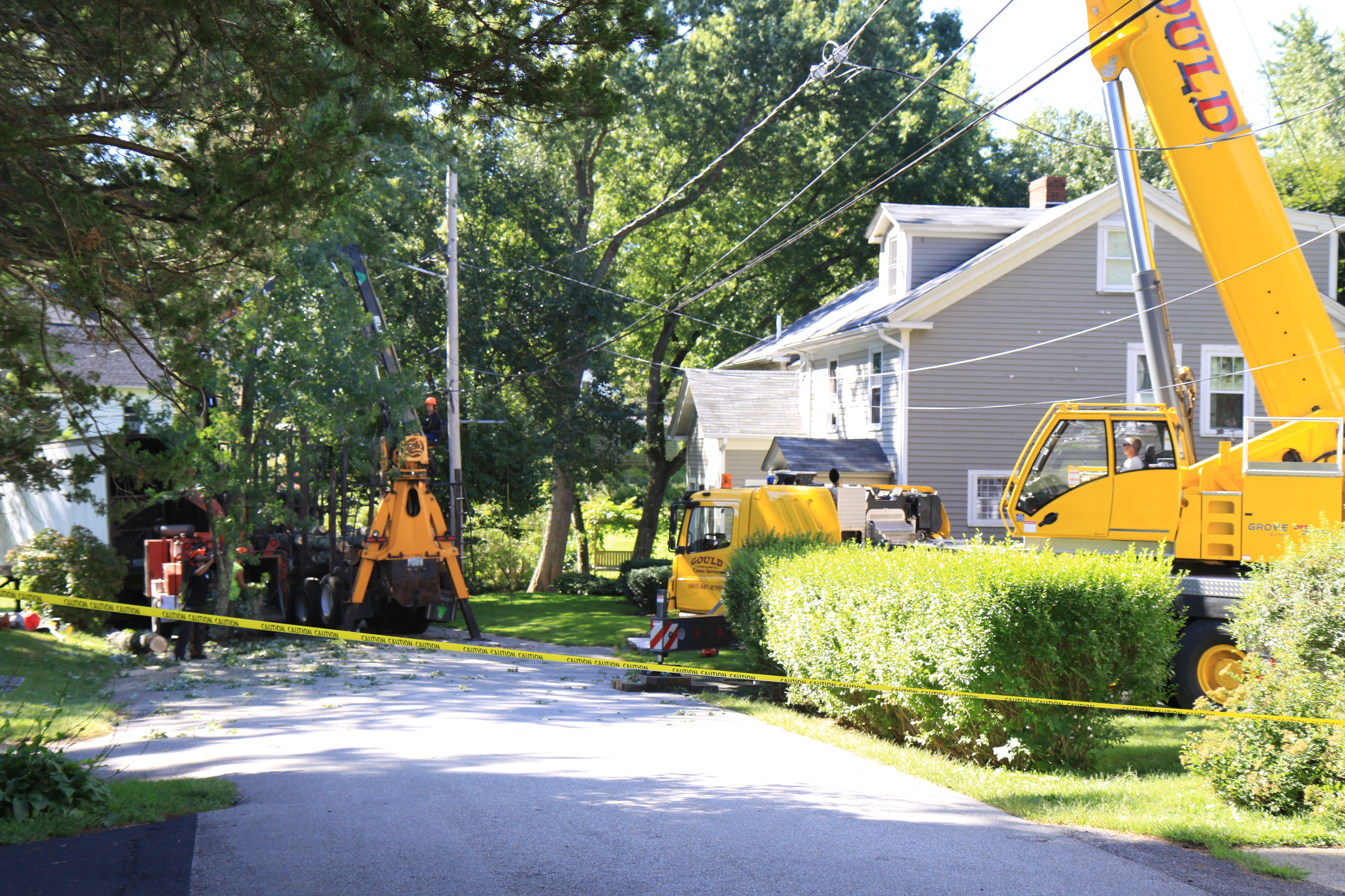 Photo Slide Show Below, showing the play by play of the removal of this Massive Silver Maple in Exeter NH – 2014