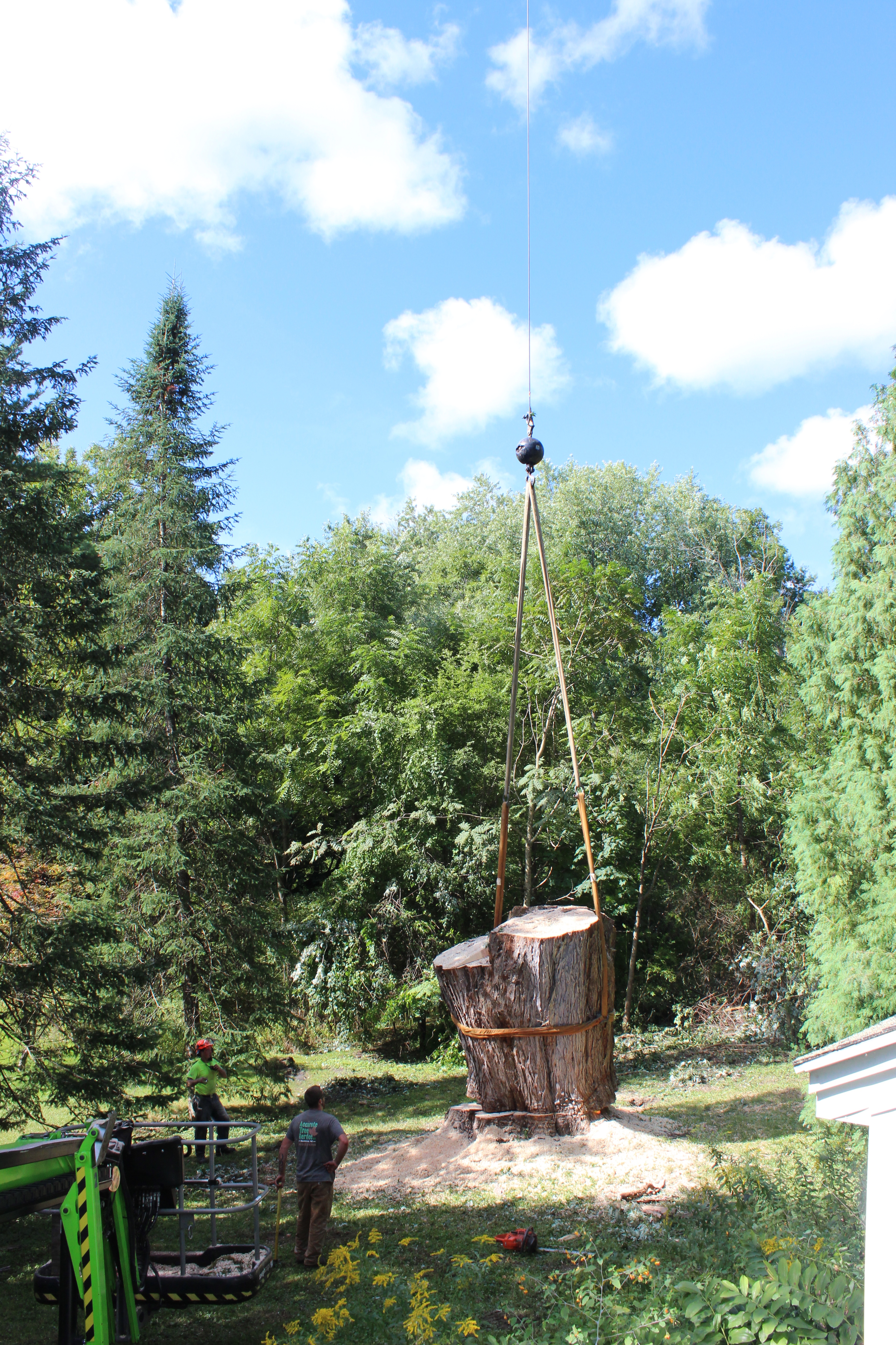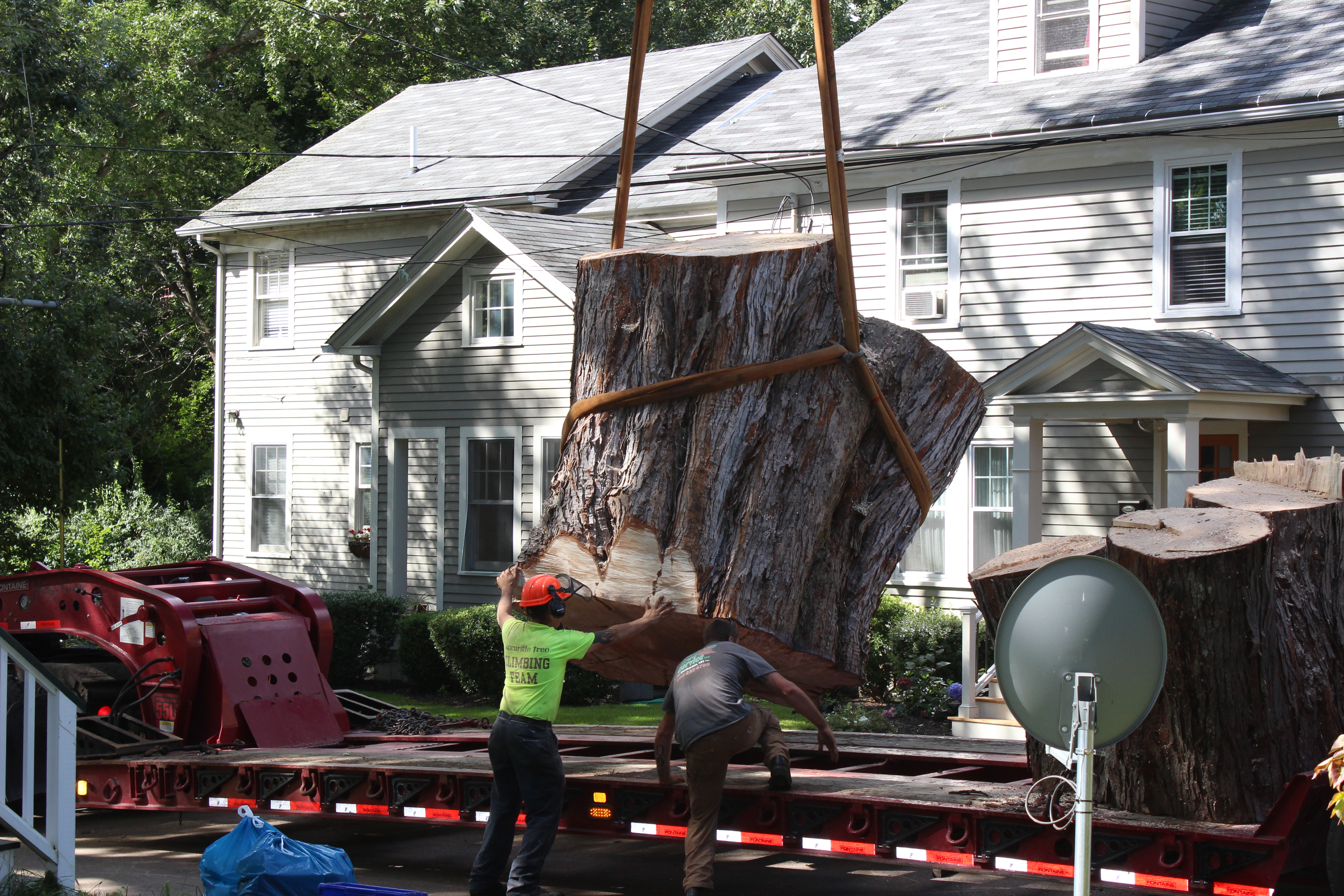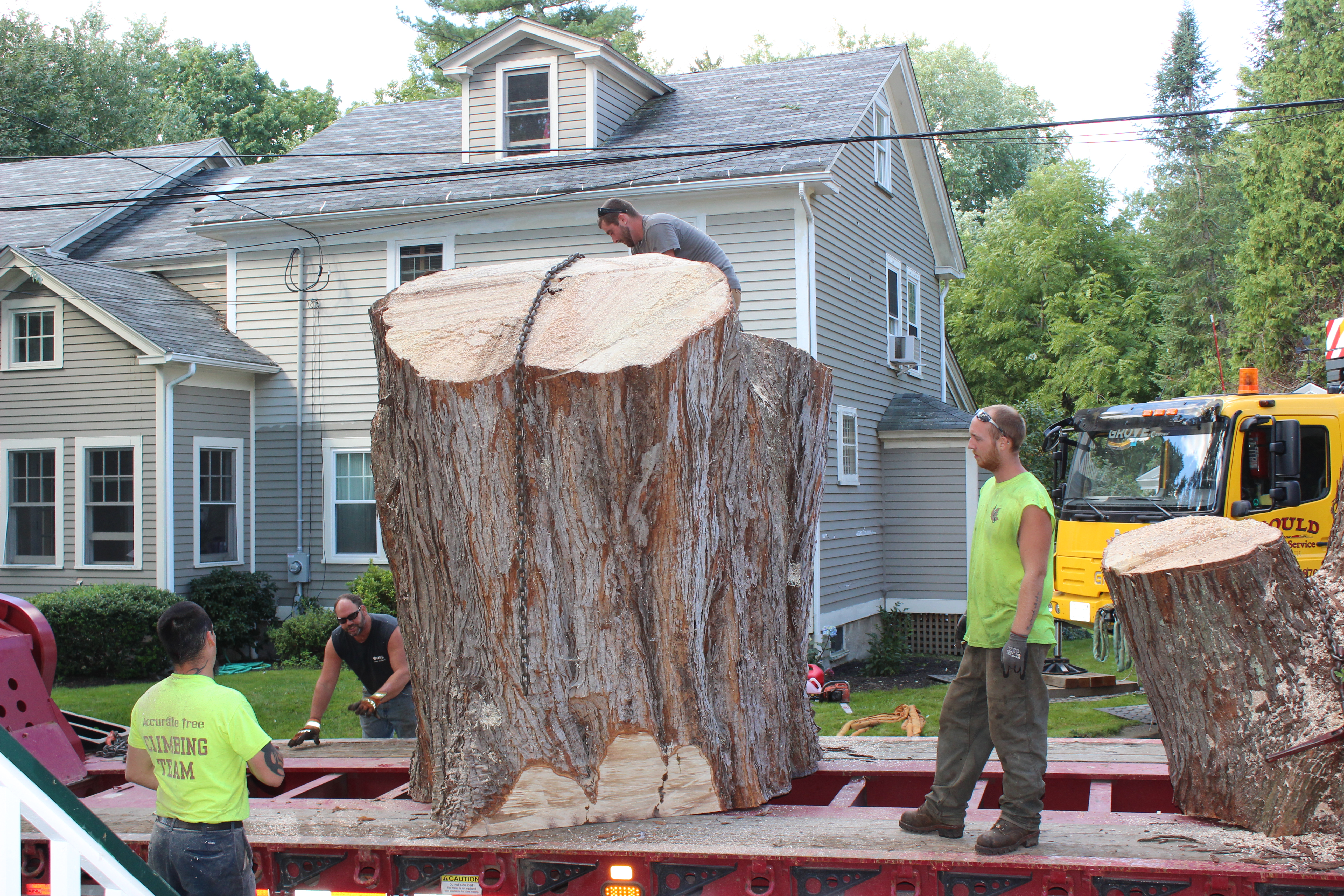Once all was said and done, we removed over 50 yards of chips that went to help fuel the Granite State at Unitil’s power plant. Two full log truck loads of firewood, that went to area residents. And a low bed that carried the 22,000+ lb stump. The total tree weighed approximately 115,000 lbs, making it the one of the largest trees that our team has ever removed. Not one part of this Silver Maple tree went unused and all went to help fuel energy locally, right in the Exeter area.